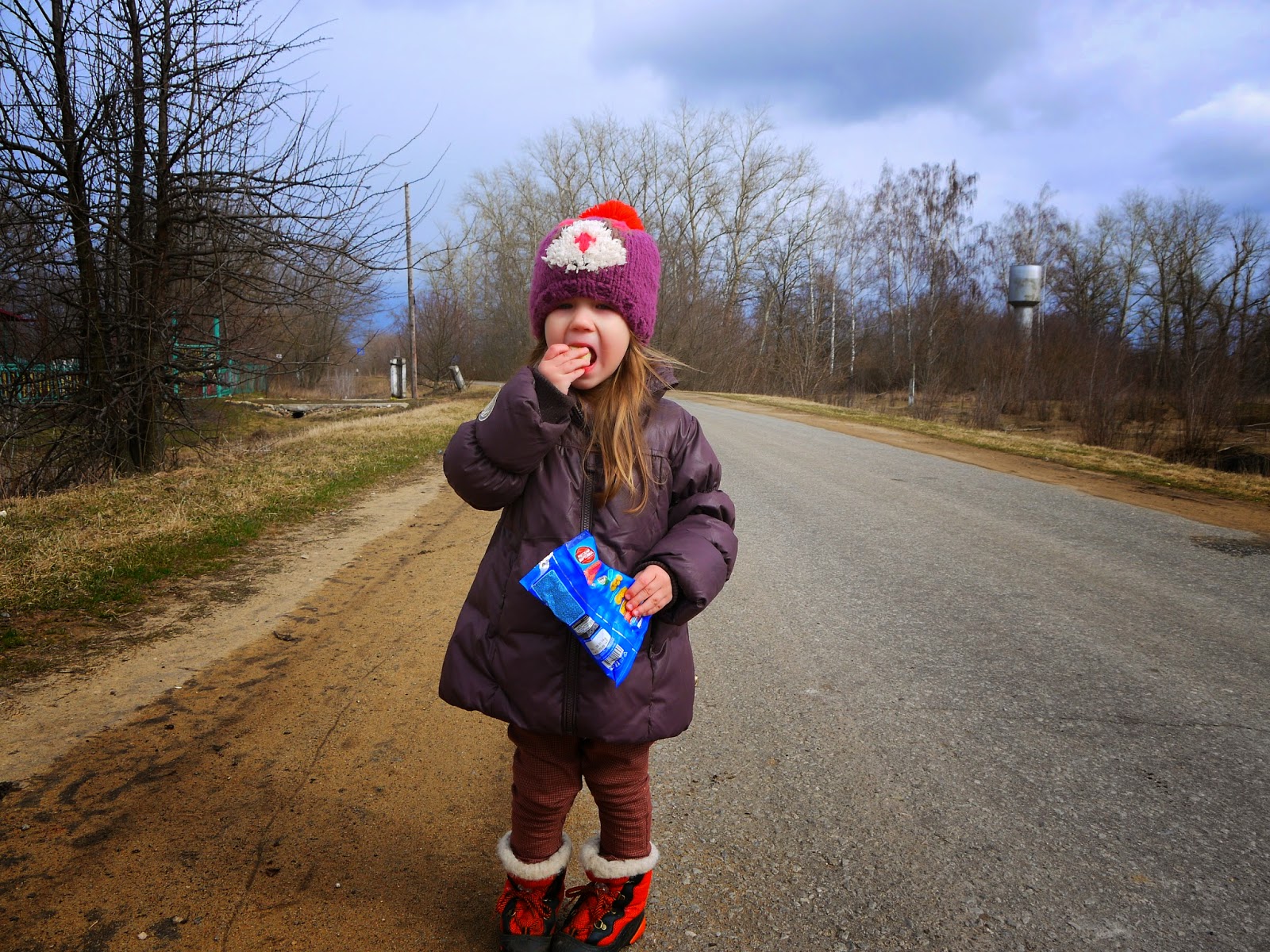 Малыш довольна, выпросила чипсов) Побыстрей домой, греться, пальцы уже не слушаются и горят от холода!