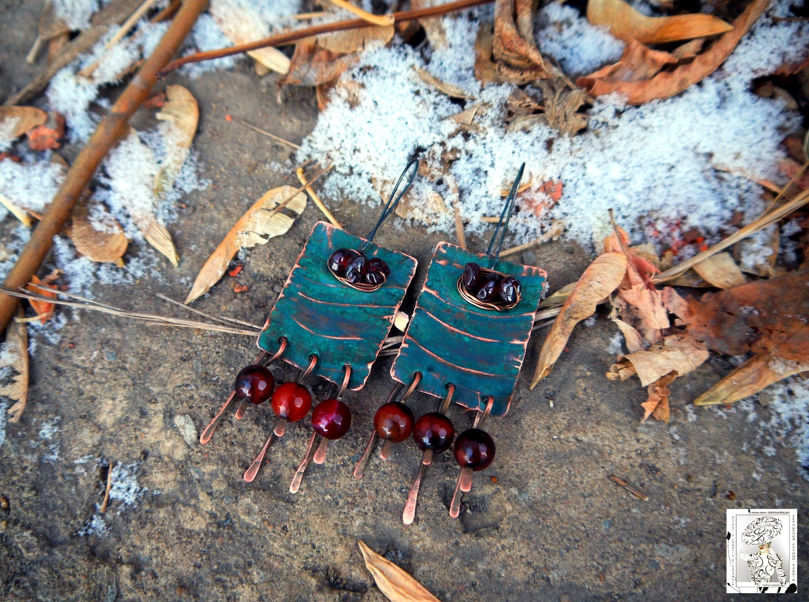 Медные серьги оригинального оттенка с сочетанием натуральных камней граната и агата. Их глубинный оптический эффект и насыщенность цвета не оставит равнодушной свою обладательницу. Камни эти излучают естественную силу, энергию через свои природные грани, подчеркнутые внешней огранкой изделия.