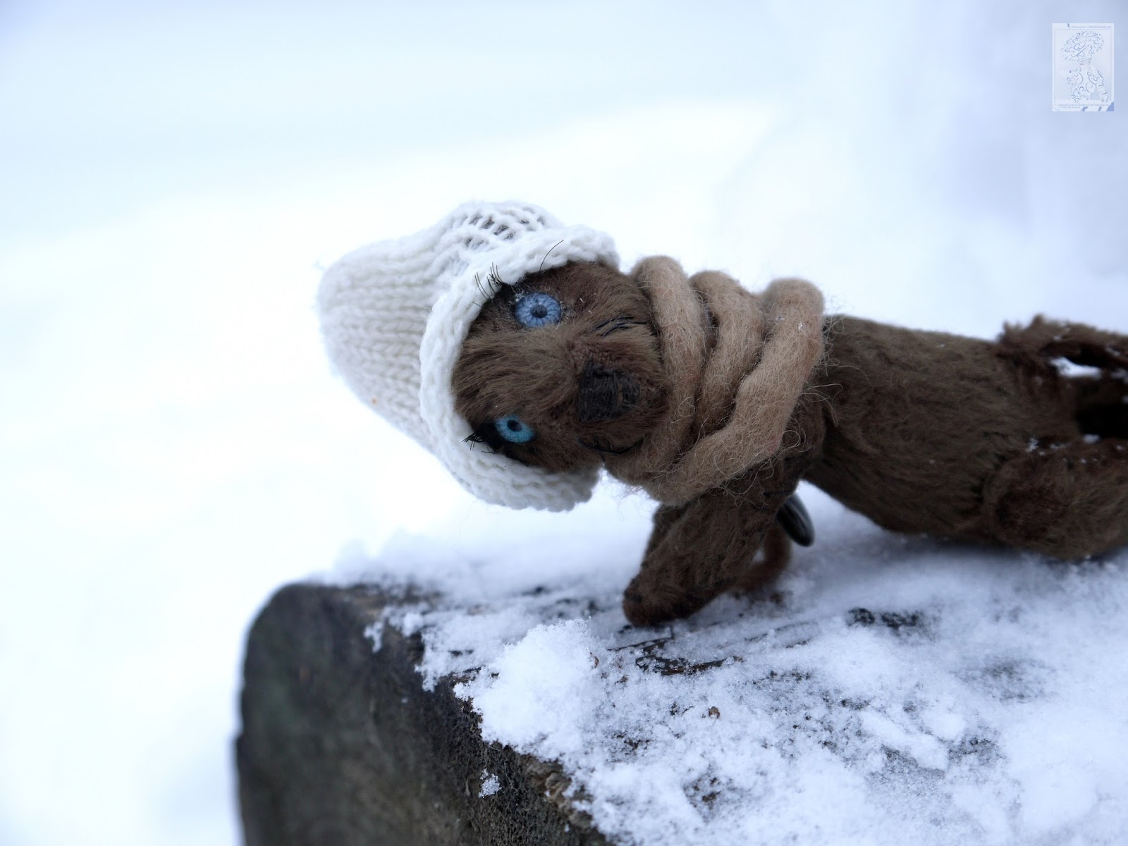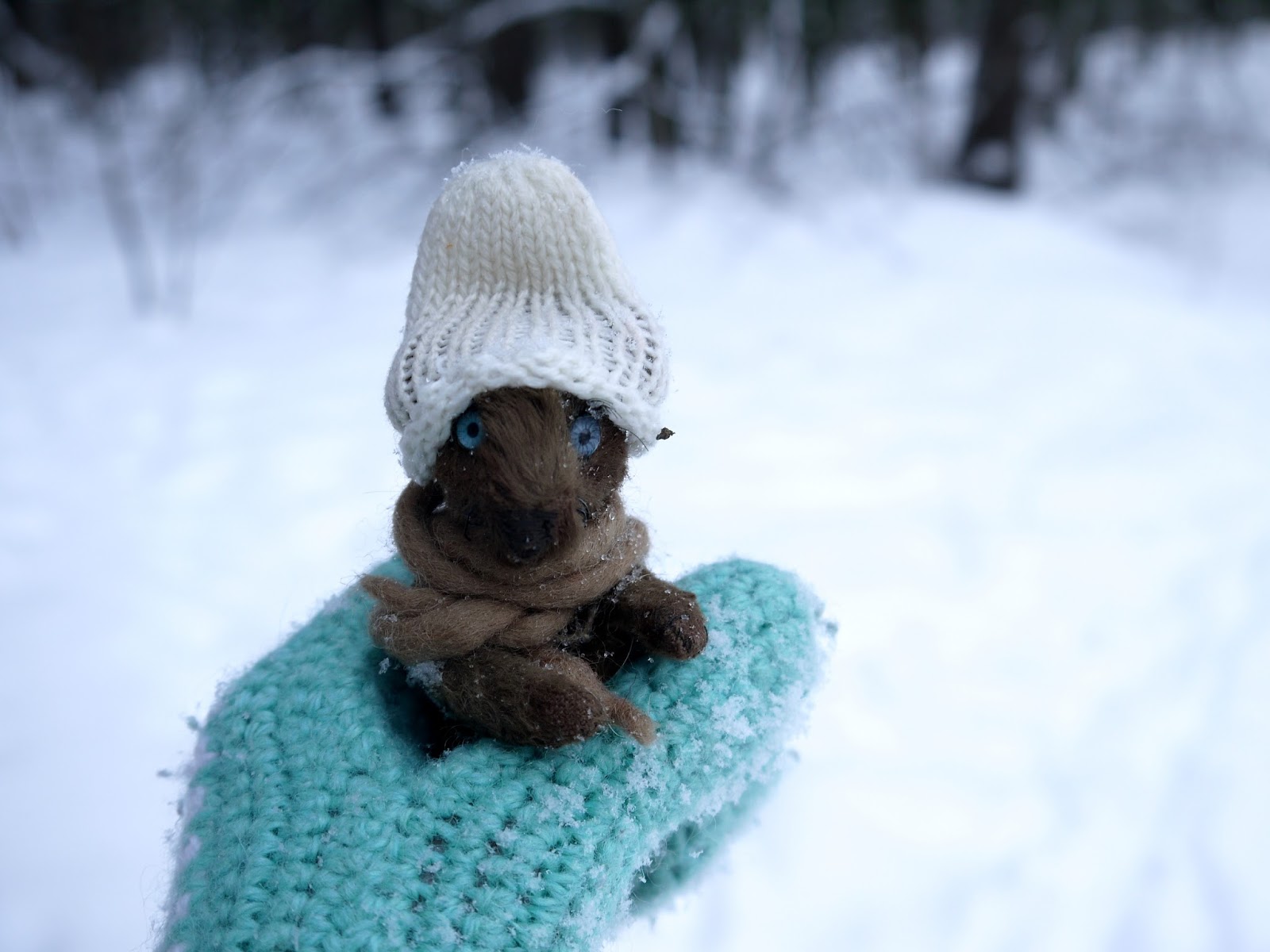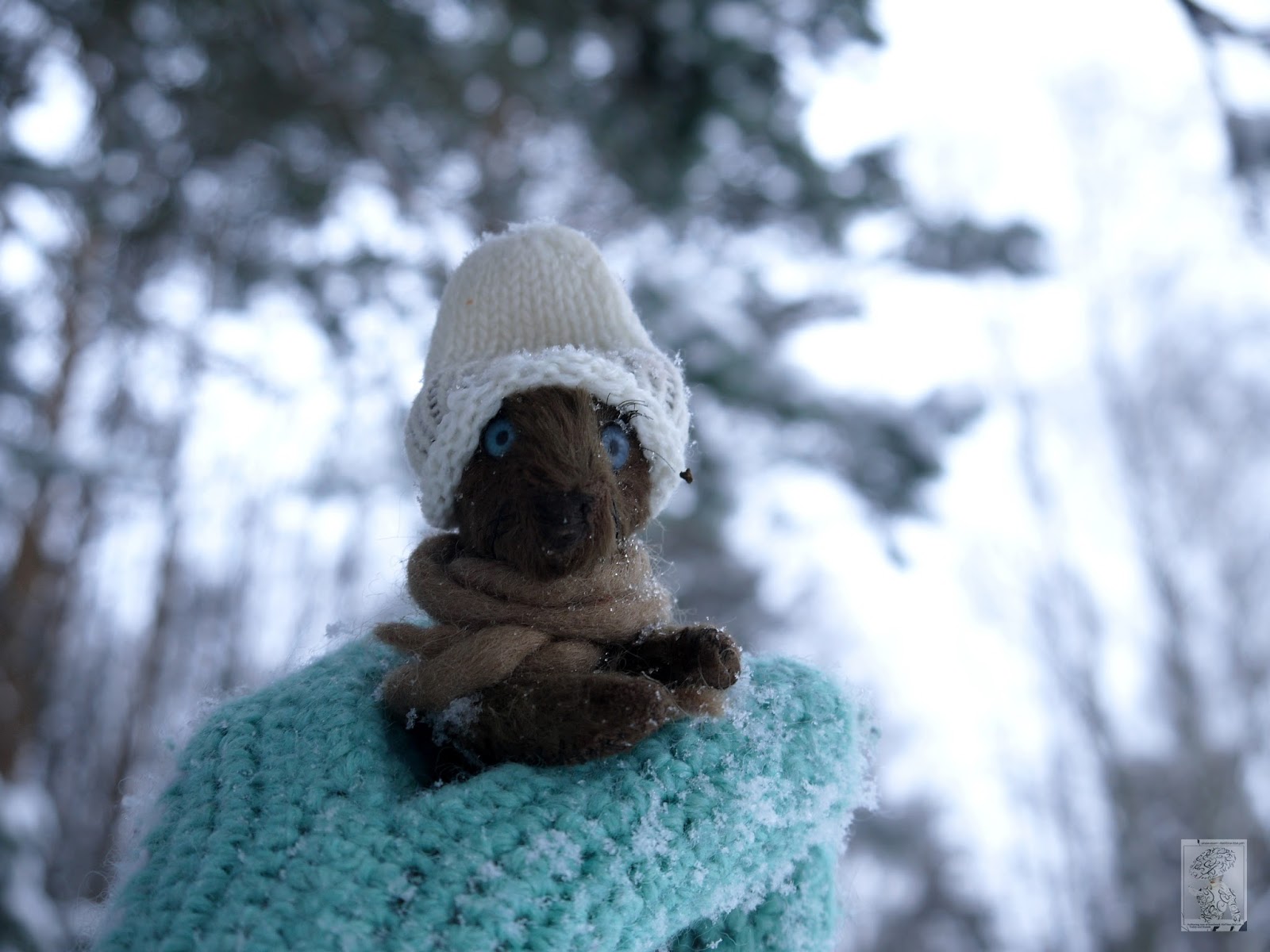 Леся побоялась замерзнуть и попросила сделать ей теплый шарфик и белоснежную вязанную шапочку)