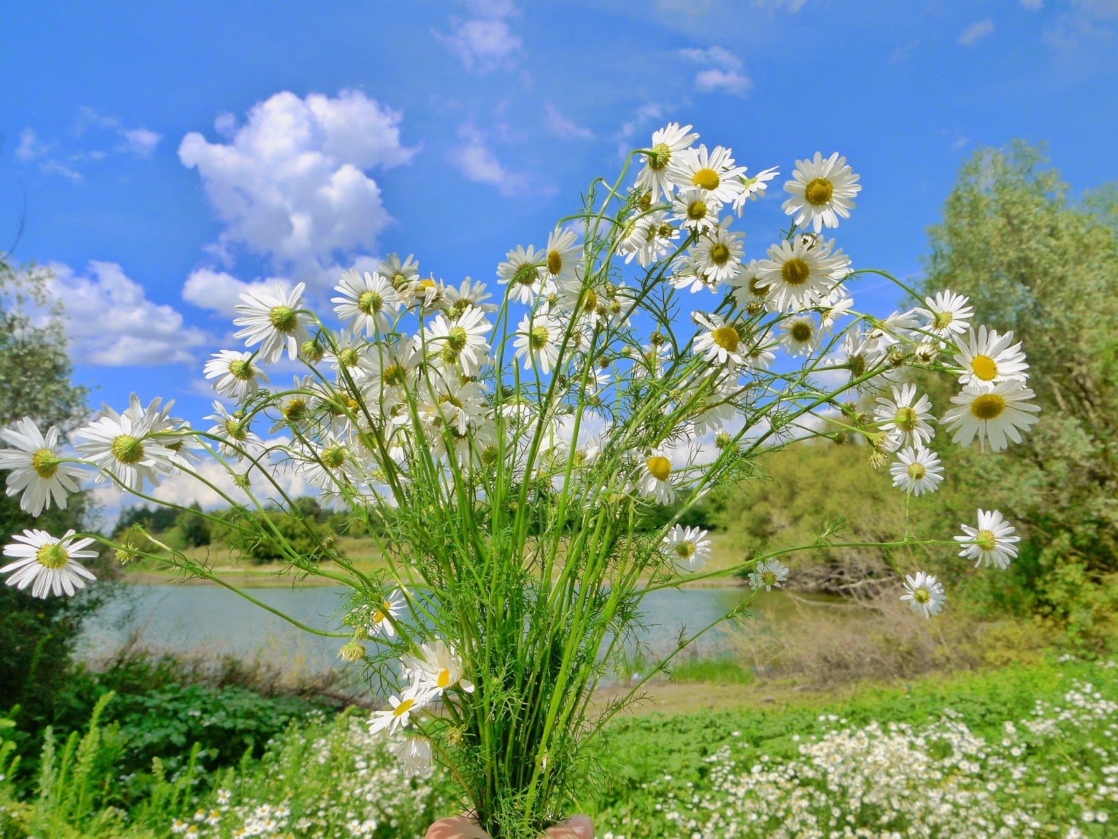 Ромашковая полянка у пруда