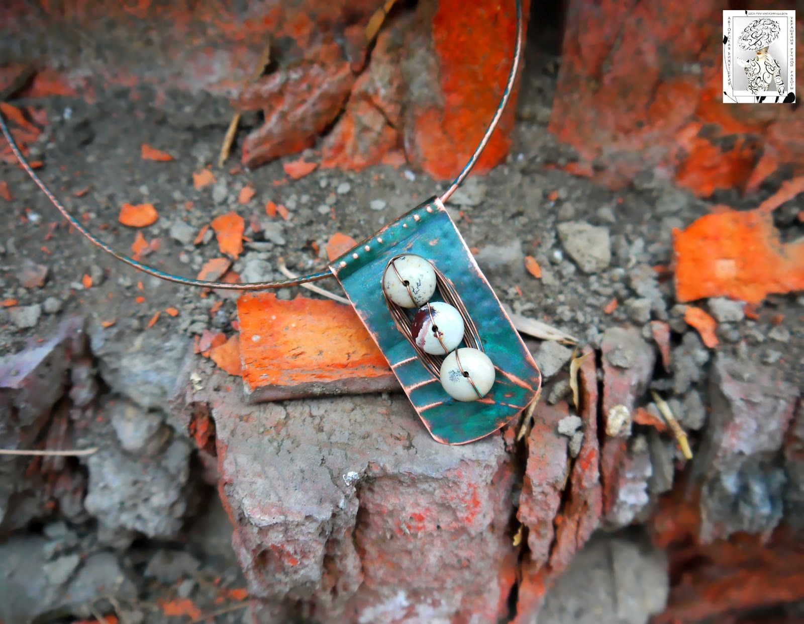 Материал: медь, медная проволока, натуральный камень яшма.