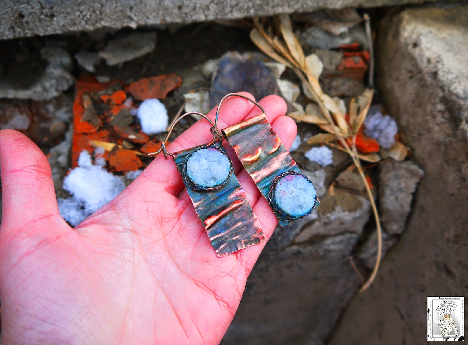 Материал: медь, медная проволока, Кабошон из ювелирной смолы, жемчуг майорка.